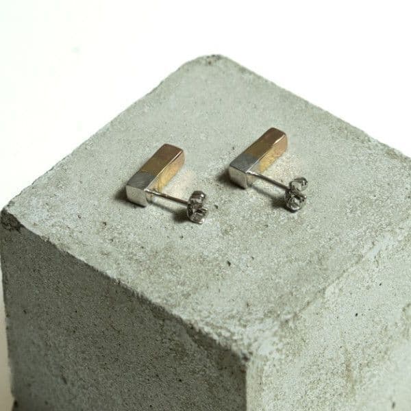 プラチナ、18金、18金ピンクゴールドを貼り合わせて作ったピアス。3色の層で地金の美しさを贅沢に味わえるジュエリー。
